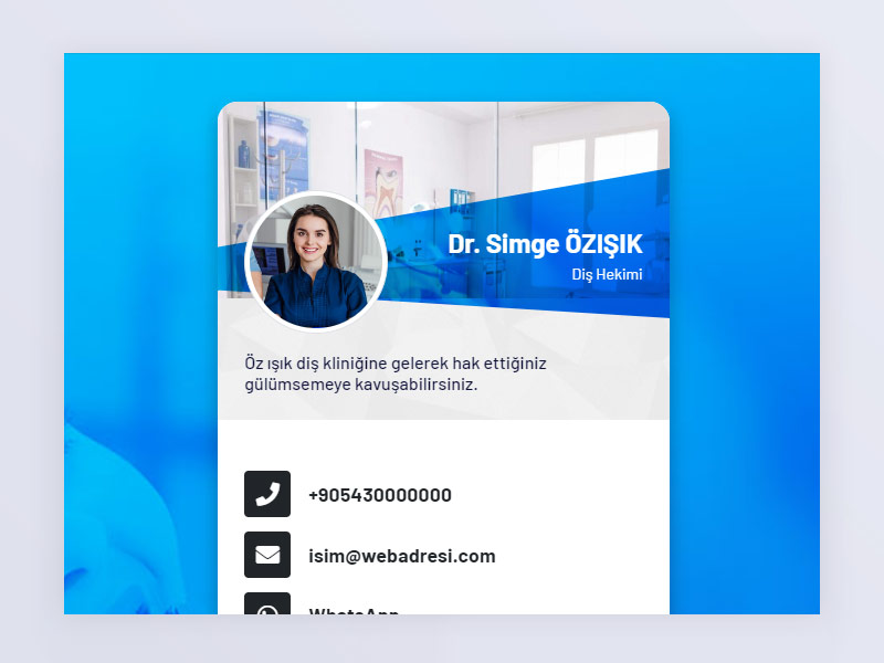 Bildiklerinizi unutun, kişiye özel arayüzü ve onlarca özelliği ile dijital kartvizitlere yeni bir soluk getirdik. Bireysel ve kurumsal kullanıcılar düşünülerek hazırlanan bu sistemle her kese ve her kesime kolayca hitap edebileceksiniz. Kişisel Kartvizit, Ürün Kartı, Mini Mağaza, Mini Blog, Whatsapp Satış Kartı ve daha fazlası...